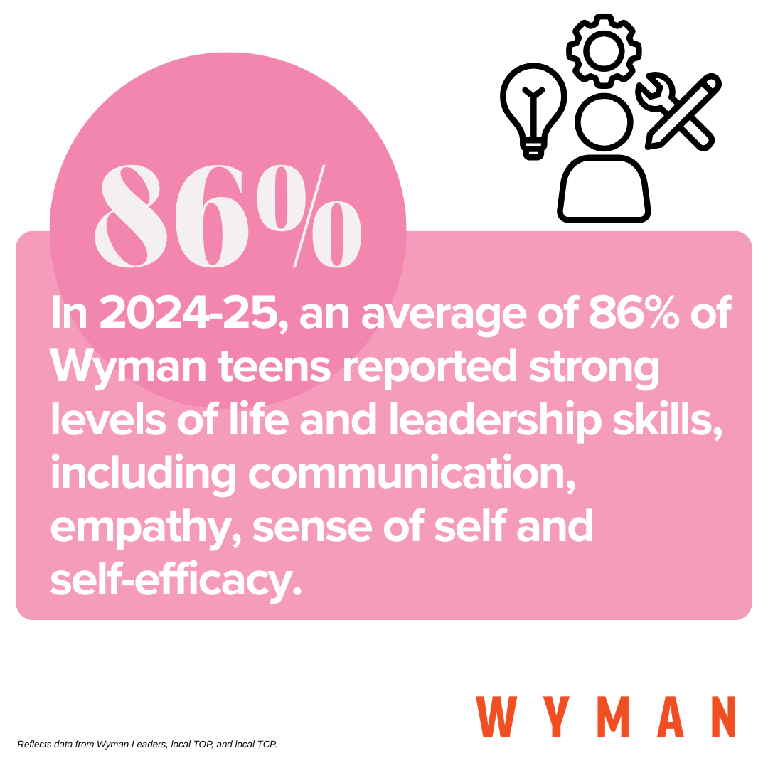Our 2024-2025 outcomes show what’s possible when young people are supported at the right moment. Teens in Wyman programs demonstrate strong life and leadership skills; deeper relationships; a sense of belonging with Wyman peers and coaches; overall positive well-being; and improved educational outcomes – including graduating from high school on time and persisting in postsecondary education.