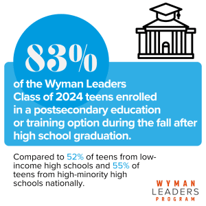 Research & Learning also explored the impact of Wyman’s scholarship opportunities on Wyman Leaders students and found that those opportunities promote strong persistence and graduation rates – often exceeding national benchmarks.